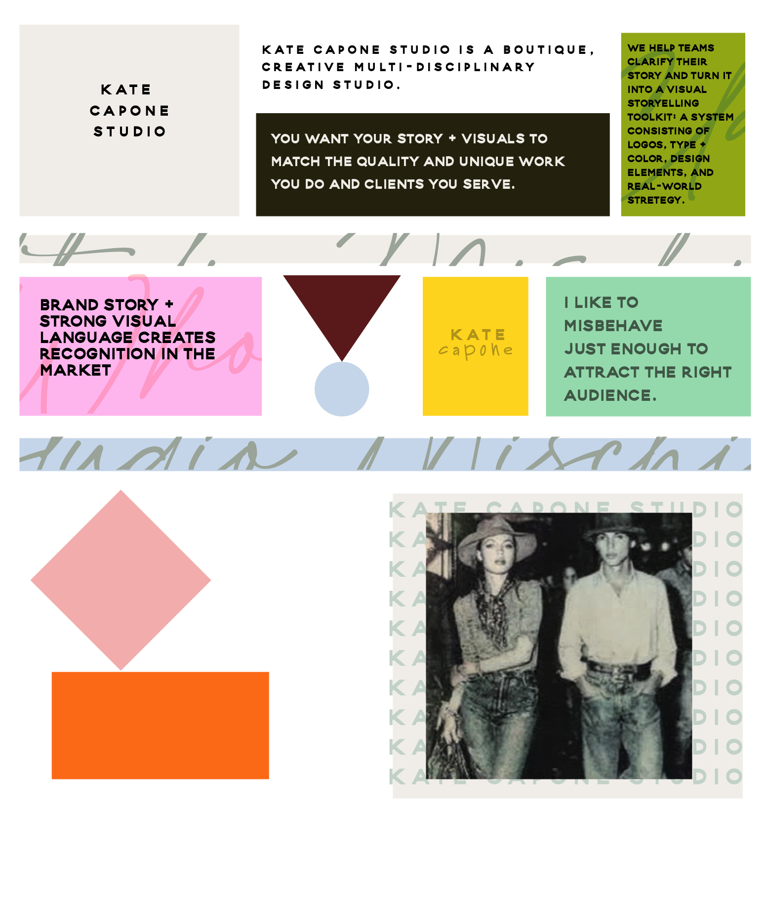 Email Kate@katecaponestudio.com for a more comprehensive breakdown of our services and how they might be right for you and your business!